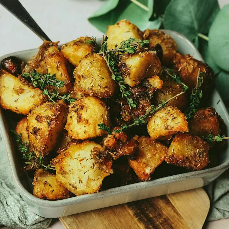 It wouldn’t be Christmas dinner without these perfect roast potatoes. Our English Saxon potatoes keep these roasties fluffy on the inside while the rich British goose fat adds a luxurious taste and keeps the outside crispy and crunchy. If you’re looking to make these gluten free you can omit the flour or substitute for one of our local, gluten free flours.